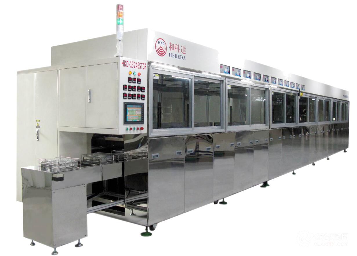 蘇州市和科達超聲設(shè)備有限公司(AMTS 2018 展位號:E1-E16)的超聲波清洗機在清洗過程中全自動控制,觸摸屏操作簡單方便,機械手運行平穩(wěn)可靠。超聲波系統(tǒng)的應(yīng)用,大大提高了對精密零部件的清洗效果。慢拉脫水工藝有效切除平板式零件表面水漬,有效防止殘留水漬干燥后留下污斑;烘干方式可采用槽式或隧道式熱風(fēng)烘干,配有耐高溫高效過濾器,保證烘干腔內(nèi)空氣潔凈,烘干效果好。