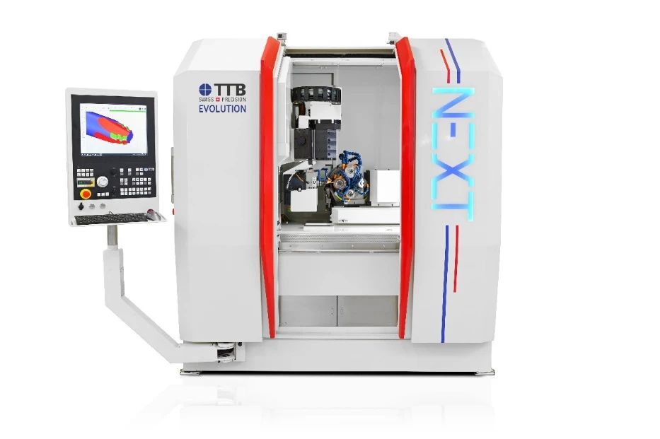瑞士TTB公司EVOLUTION NEXT TTB高精度刀具磨床。加工刀具范圍從微刀(0.02mm)到中等大小直徑(14mm),齒輪刀具模數從M0.05到M1。可以實現五軸聯動的5軸或者6軸機床,帶4個磨削主軸,重復定位精度<0.0003mm,每個主軸最多可配3個砂輪,采用TTB專用的軸驅動系統,線性軸無間隙。配置2-4個托盤裝載機,最多可容納814個工件。采用模塊化設計,提供靈活的擴展選項。用于超高精密刀具和齒輪刀具(滾刀、插刀、車齒刀)的加工,可手動或自動上下料。