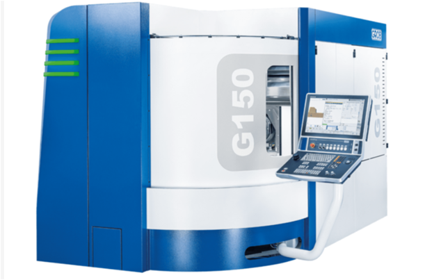 配備格勞博機器人單元GRC-R12的五軸聯動通用加工中心G150,是在中國展會首次展出,X/Y/Z軸行程450/670/665mm,定位精度0.006mm,工作臺直徑Φ380mm。