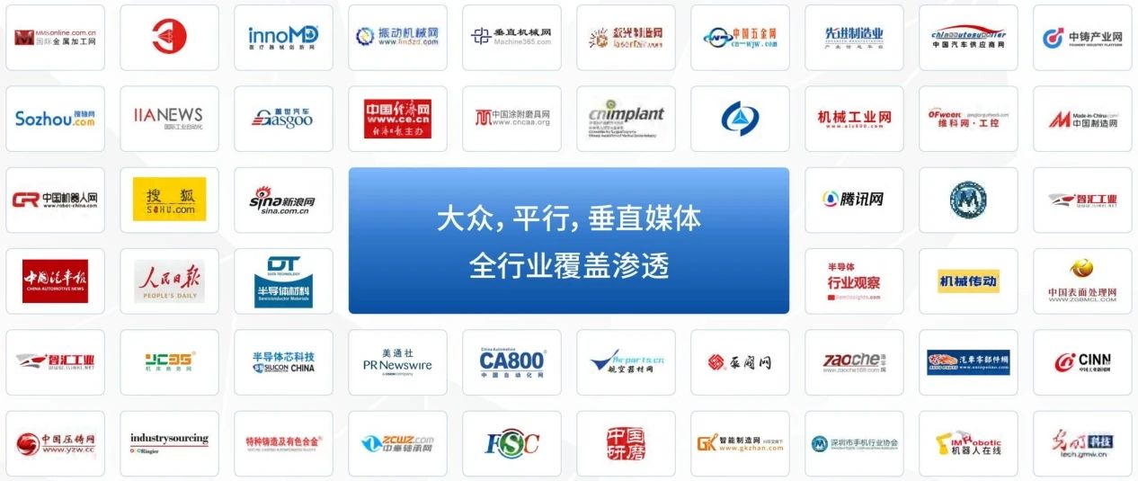 *合作媒體包括但不限于:金屬加工雜志社、汽車工藝師、刀具機工世界、北京機工弗戈傳媒廣告有限公司、榮格工業傳媒、機床界、CNC刀具、鈑金沖壓齒輪傳動網、國際金屬加工網、中國壓鑄網、中國鈑金網、MM現代制造、AI汽車制造業、軸承雜志社、搜軸網、中國沖壓網、亞洲新能源汽車網、中國汽車零部件網、中國制造網、中國汽車報、中國振動機械網、環球電鍍網、環保行業網、騰訊視頻、網易視頻、中國工控網等、美通社等。