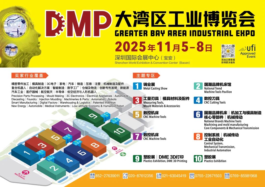 在此背景下,將于2025年11月5-8日在深圳國際會展中心舉行的2025 DMP大灣區工業博覽會,聚焦 “國潮機床展區”與“機加工與模具制造采購展區” 2大戰略展區,為中國制造從“內卷突圍”到“全球競合”搭建關鍵橋梁。