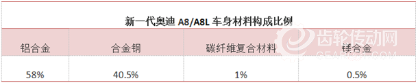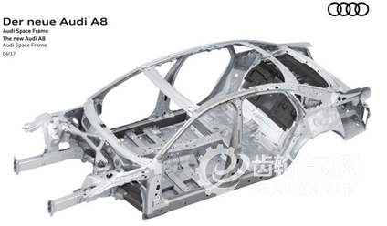 在奧迪4月發(fā)布的關(guān)于新一代奧迪A8的新聞中,我們看到,相比現(xiàn)款車型,新一代奧迪A8車身骨架大量應(yīng)用輕量化材質(zhì),車身不同部位將最輕的質(zhì)量和最優(yōu)的性能結(jié)合在一起,共同構(gòu)成整個(gè)車架。車身材料種類更多,車身連接技術(shù)更加先進(jìn)。