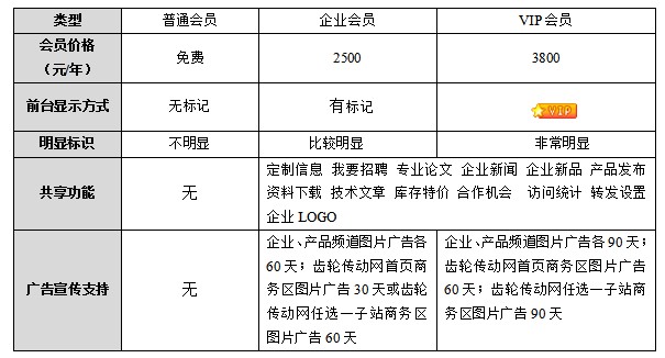 企業會員:齒輪傳動網為您提供的尊貴會員服務。全程享受貴賓服務、體會尊崇身份;擁有多種增值服務、享有網站各種推廣、優惠活動的優先權利!強大的會員特權全面您的企業品牌知名度和產品曝光率!