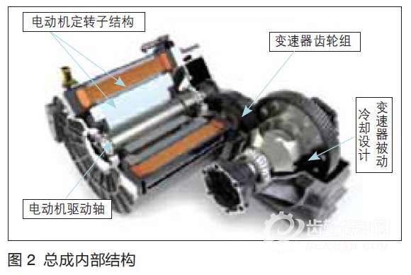 其總成內(nèi)部結(jié)構(gòu)如圖2所示的電動(dòng)機(jī)定子、轉(zhuǎn)子及變速器齒輪等結(jié)構(gòu)構(gòu)成。