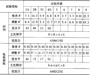 針對電火花粗加工實驗數據分析,對于時間試驗指標而言,A4、B4、C1、D1分別為B、C、D因素的優水平;對于損耗試驗指標而言,A2、B2、C2、D1分別為B、C、D因素的優水平。
