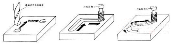 點(diǎn)位控制只要求控制機(jī)床的移動(dòng)部件從一點(diǎn)移動(dòng)到另一點(diǎn)的準(zhǔn)確定位,對(duì)于點(diǎn)與點(diǎn)之間的運(yùn)動(dòng)軌跡的要求并不嚴(yán)格,在移動(dòng)過(guò)程中不進(jìn)行加工,各坐標(biāo)軸之間的運(yùn)動(dòng)是不相關(guān)的。為了實(shí)現(xiàn)既快又精確的定位,兩點(diǎn)間位移的移動(dòng)一般先快速移動(dòng),然后慢速趨近定位點(diǎn),以保證定位精度,如下圖 所示,為點(diǎn)位控制的運(yùn)動(dòng)軌跡。