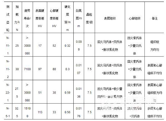 滲氮后相關指標及試樣1/2齒高處檢測結果如下: