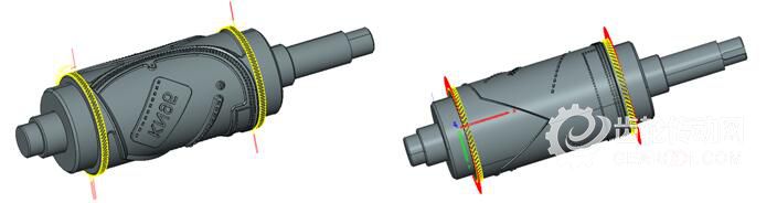 在加工切刀口時,一般使用“五軸形狀偏置精加工”呈環(huán)繞形加工, R角刀分層切削效率低下,且表面效果不佳。優(yōu)化后采用“五軸輪廓加工”使用成型刀分層加工,大大的提升了加工效率與表面質(zhì)量。切刀口優(yōu)化前后刀具路徑如圖11所示。