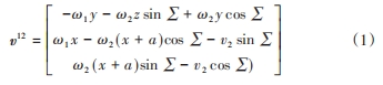 本文設蝸桿的移動速度 v1=0,齒輪的移動速度 v2≠ 0,在蝸桿和斜齒輪雙自由度嚙合過程中,嚙合點在坐標系S中的相對運動速度為: