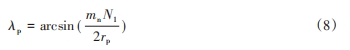 漸開線蝸桿和斜齒輪嚙合過程中,二者法向齒距相等,可得到λp的計算式為: