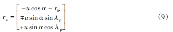 與蝸桿共軛的斜齒輪的齒面方程:共軛斜齒輪的齒面展成過程,是產形線形成的螺旋面包絡展成斜齒輪齒面的過程。將產形線的空間矢量方程統一表示為:
