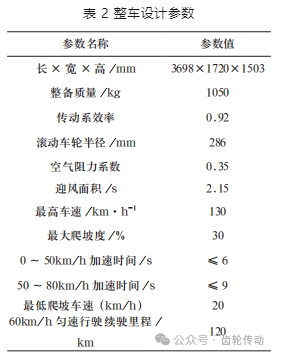 整車(chē)設(shè)計(jì)參數(shù)如表 2 所示。