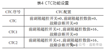 其中,本地變量適用于CTC功能,通過不同CTC 可對本地變量進(jìn)行賦值,從而實(shí)現(xiàn)不同工況測試,如表 4 所示,CTC、CTC1 和 CTC2 分別對應(yīng)正常換擋、無故障應(yīng)對條件下?lián)Q擋和故障應(yīng)對條件下前副箱低擋換擋工況。