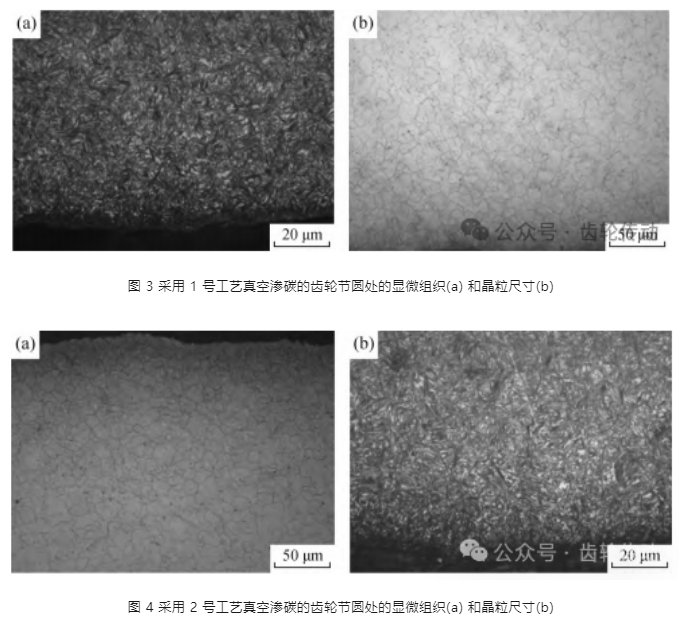 齒輪的有效硬化層深度按 GB/T 9450—2005《鋼件滲碳淬火硬化層深度的測定和校核》檢驗; 顯微組織和晶粒度分別按 GB/T 25744—2010《鋼件滲碳淬火回火金相檢驗》和 GB/T 6394—2017《金屬平均晶粒度測定方法》評級。