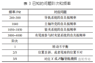 對于機(jī)器而言,其運(yùn)動過程中必然存在一些固有的特征階次和頻率,表 3 列出了根據(jù)經(jīng)驗分析得出的部分已知的問題頻率和階次,便于使用者在分析解決問題時參考。