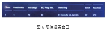 為了預(yù)防今后再次發(fā)生同樣問題,可以在監(jiān)控窗口進(jìn)行限值設(shè)置和抽檢超過設(shè)置限值的零件。如圖 6 所示,對于階次(2±2),珩齒階段 10,工件軸C 如超過 60 mg 振幅,零件將被送往抽檢區(qū)域,提示操作者該零件存在風(fēng)險,需進(jìn)行檢測,此舉可以有效避免風(fēng)險零件的流出。