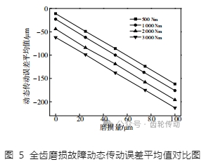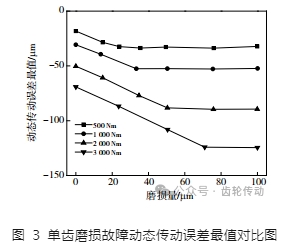 所有齒輪都達到相同的磨損量,不會出現單齒故障情況下磨損齒不受載荷作用的現象,這使得在全齒磨損故障條件下形成了更穩定的動態傳動誤差。