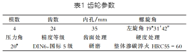 首先分析計算系統(tǒng)加速度、水平推力,接著預選齒輪并計算其負載扭矩、齒輪轉(zhuǎn)速、轉(zhuǎn)動慣量。預選齒輪參數(shù)為齒數(shù)=24,模數(shù) m=4,齒寬=40mm。借助solidworks 軟件的邁迪工具進行齒輪強度校核,校核通過。齒輪相關(guān)參數(shù)如表1。