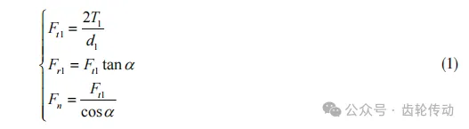 式中:T1為小齒輪傳遞轉(zhuǎn)矩(N·mm);α為壓力角。