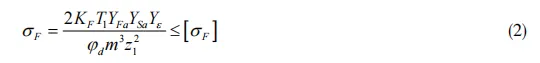 式中:KF為載荷系數(shù),KF=KAKVKFaKFβ ;YFa為齒形系數(shù);YSa為應(yīng)力修正系數(shù);Yε為重合度系數(shù);φd=b/d1 。