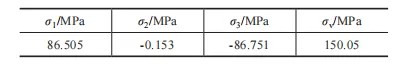 根據有限元法的計算結果,獲取所選取點的主應力(σ1,σ2和σ3)和等效應力(σv即σH)如表3所示。