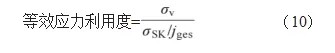 根據FKM規范,靜強度的評估準則是計算等效應力的利用度≤1,即工作等效應力與允許的靜態應力的比值≤1,如下式所示: