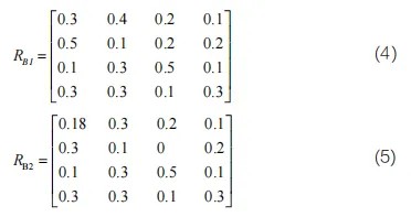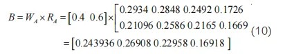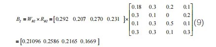 計算得到準則層B各因素的模糊評價矩陣如下: