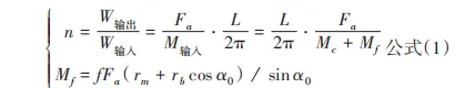 由公式(1)可知,負載和輸入力矩的比值與導程L與2π的比值的乘積即為傳動效率,其中輸入力矩由承載力矩Mc與摩擦力矩Mf組成,承載力矩Mc與負載有直接聯系,而摩擦力矩Mf是能量損耗的來源。