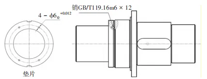 通過4個定位直銷增加墊片的徑向約束,從而起到限制墊片的徑向自由度,即使存在大的磨損量,由于定位銷對墊片徑向自由度的約束,即不會出現墊片移動掉落,也不會影響傳動效率,可確保設備的正常運行。