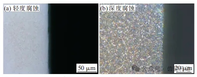 未開裂面的金相顯微組織照片見圖4。圖4(a)為500倍輕度腐蝕金相顯微組織照片;圖4(b)為1000倍深度腐蝕金相顯微組織照片。