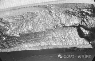 被動錐齒輪斷口宏觀形貌(見圖4):斷齒可見明顯的光亮輝紋,為典型接觸疲勞斷裂形式,相鄰斷齒無明顯疲勞斷裂特征,呈深灰色沖擊韌性斷口。