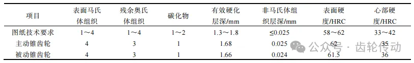 硬化層深度按照標(biāo)準(zhǔn)《鋼件滲碳淬火硬化層深度的測定》(GB/T 9450-2005)進(jìn)行滲碳淬火有效硬化層深度的測定,硬度按照標(biāo)準(zhǔn)《金屬材料洛氏硬度試驗第1部分:試驗方法》(GB/T 230.1-2018)進(jìn)行洛氏硬度檢測,檢測結(jié)果均符合技術(shù)要求,檢測結(jié)果如表2所示。