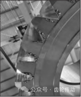 通過表4的數(shù)據(jù)表明齒輪的實(shí)際加工效果的精度在0.3mm以內(nèi),滿足實(shí)際的生產(chǎn)工藝要求,現(xiàn)場(chǎng)加工圖和實(shí)際齒輪倒角效果,如圖18、圖19所示。