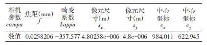 (1)首先對(duì)相機(jī)進(jìn)行內(nèi)外參的標(biāo)定,獲得相機(jī)的內(nèi)參和外參, 標(biāo)定結(jié)果,如表1、表2所示。