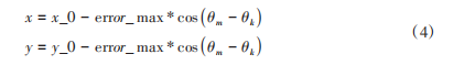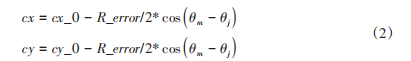 根據(jù)誤差圓波谷所在的角度θj和當(dāng)前旋轉(zhuǎn)平臺(tái)所處于的角度θm,就可以獲得當(dāng)前齒輪處于偏心現(xiàn)象的哪一個(gè)位置,通過下式,就可以獲得實(shí)際齒輪中心在機(jī)器人坐標(biāo)系下的位置。