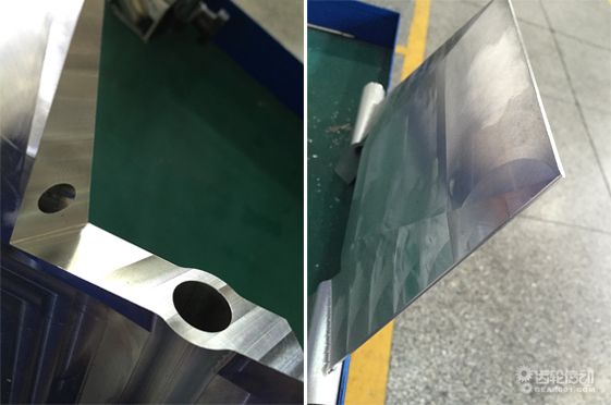 經過對翼板零件型面的粗精加工高效改進,該零件加工效率提升3倍以上,產品尺寸精度及表面質量得到有效保證,改進前后加工出的型面表面形貌如圖7所示。另外,在精加工高速切削時,金屬材料被迅速切斷并脫離工件表面,因此加工出零件周邊毛刺明顯減少,后續鉗工挫修工作量大幅減少,進一步縮短零件整體加工時間。