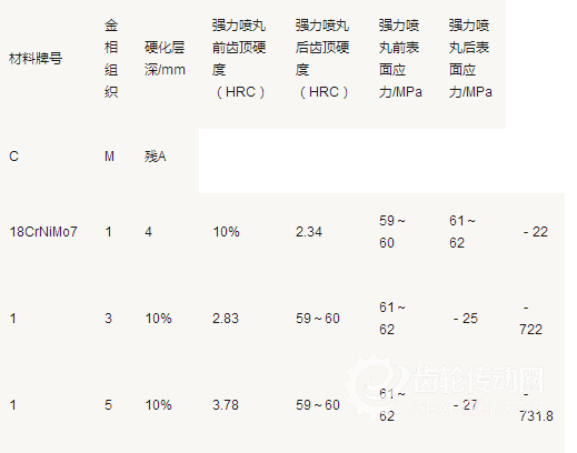 我國強力噴丸工藝在機械行業也是從20世紀80年代起,特別是近二十年隨著汽車制造業的崛起、風電發電工業的發展才得以重視,并帶動噴丸強化用介質、設備和工藝技術的發展。介紹各種強力噴丸的資料不少,但對18CrNiMo7-6鋼不同硬化層深度下,強力噴丸對齒輪性能的影響研究不多。本文就強力噴丸對18CrNiMo7-6鋼不同硬化層深度齒輪的性能影響進行研究,為18CrNiMo7-6鋼齒輪強力噴丸提供工藝試驗依據。
