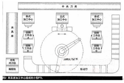 FTL:用高速加工中心組成高效率的柔性生產線(FTL),具有小型化、柔性突出以及易于變更加工內容等顯著特點。圖2為上汽集團某發動機公司利用該生產線加工發動機機體、氣缸蓋、濾清器座等工件的實例。