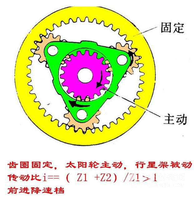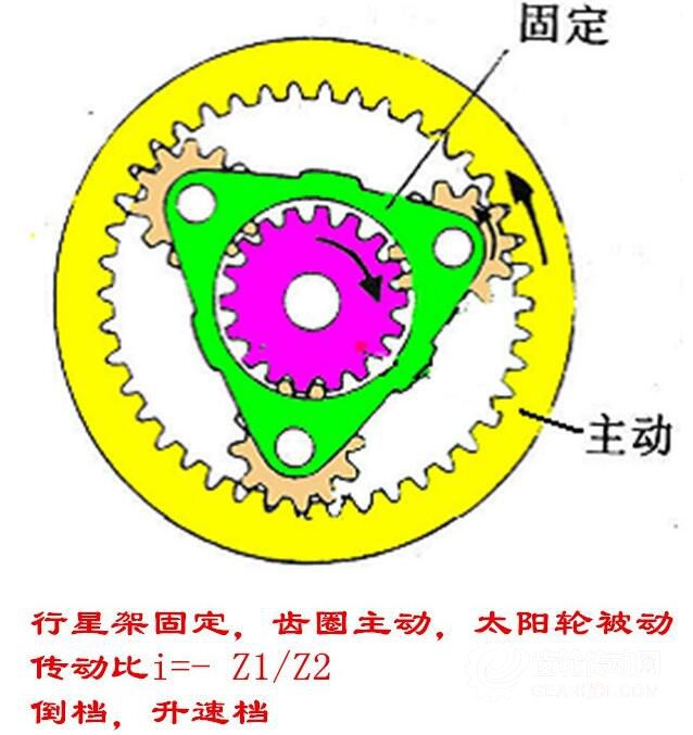 5、行星架固定,太陽輪主動,齒圈被動