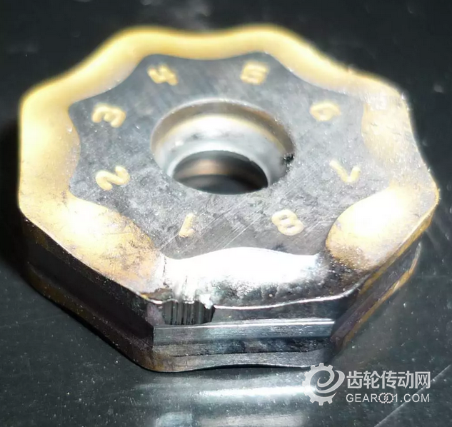溫度在刀具壽命和刀具失效中有著重要的影響作用。熱裂紋是切削刃前刀面和后刀面開裂的表現,其走向與切削刃成直角。裂紋從前刀面最熱的點開始,通常是離切削刃有些許距離的地方,然后向前刀面延伸,在后刀面向上延伸。前刀面和后刀面的熱裂紋最終連在一起導致切削刃后刀面崩刃。
