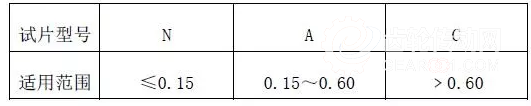 在弧高為0.15~0.60mm的噴丸強度范圍內,使用試片A;強度低時使用試片N;強度高時使用試片C。