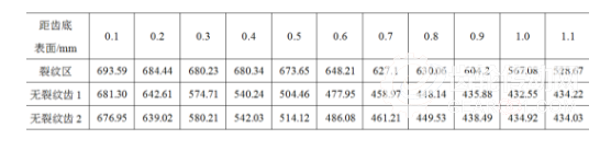 表1 齒輪軸齒底近表面硬度檢測結果(0.1mm處HV0.5)