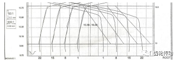 兩個工件的第 1、8、15、22 齒對應的 Fα、 ffα、fHα 值見表 2,此時相關誤差數(shù)值顯著減小。實際加工中可根據(jù)毛坯材料、待加工花鍵的具體特征、加工設備及刀具等適當調整,以確保加工出高質量的漸開線花鍵。針對齒形、齒向方向產生的異常凸點,可仔細檢查搓齒板每個齒上是否沾有雜質、加工中使用的冷卻油是否污染,過濾系統(tǒng)是否堵塞,以上問題解決后,齒面異常凸起可自然解決。齒向形狀超差是指齒面形狀在導程方向誤差大。遇到此類問題可先查看花鍵是否帶螺旋角,對應的搓齒板螺旋角是否一致,螺旋角旋向是否正確。如刀具正確仍然出現(xiàn)如下問題,可檢查刀具正面安裝精度,將搓齒機調整至點動模式,檢查正面安裝面的跳動,通過調整該安裝面的跳動至 2 絲內,即可消除齒向形狀超差問題。當然刀具各個安裝基準面的清潔度在任何時候都非常關鍵,會對花鍵質量產生較大影響。