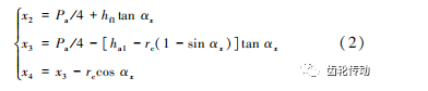 x2 ,x3 和 x4 為滾刀軸向齒形上 2,3 和 4 號點在滾刀坐標系中 X1 軸上的坐標,且有: