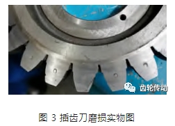 ( 2) 常規硬質合金插齒刀刮削時前刀面刃口磨損很快,刀具容易崩刃,刮削齒形誤差較大。
