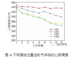 1) 當出風口流速小且工件層數過多時,部分置于氣淬室中心和底層工件受儲熱影響較大,其會因為冷速不足出現大部分心部硬度不足,心部組織不合格。