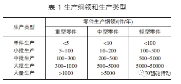 生產類型時按每年的生產綱領來劃分,如表 1 所示。