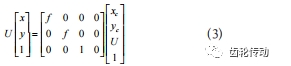 式(5)中,fx為U軸方向歸一化焦距,fx=f/dx;fy為V 軸方向歸一化焦距,fy=f/dy。