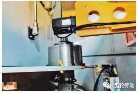 機器人將壓裝好的部件取出并傳遞到焊接設備(圖 3),通過專用的工裝軸向定位夾緊后,采用高能量填絲焊技術將差速器殼體和主減齒輪焊接成為整體。整個焊接過程非常快捷,激光器發射激光,先將鎳基焊絲融化,然后焊絲作為焊接中介將差速器和主減齒輪融合成一個整體。