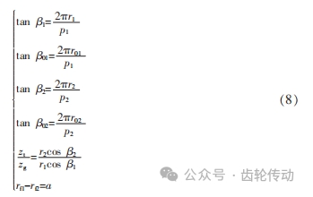 考慮到車削外齒時,工件與刀具的中心距為 a=rf1+ rf2,以漸開線為標準,根據刀具齒頂圓與工件齒根圓嚙合理論,同樣可以用式(8)進行類似描述,但是需要對其進行修改,中心距為工件節距圓半徑與刮齒刀節距圓半徑之和,即 rf1+rf2=a。